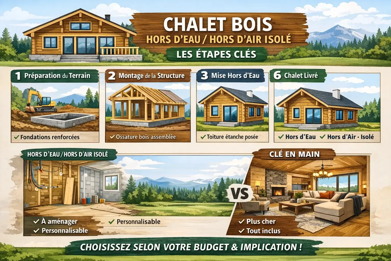 Quelle différence entre chalet hors d’eau hors d’air et clé en main ?